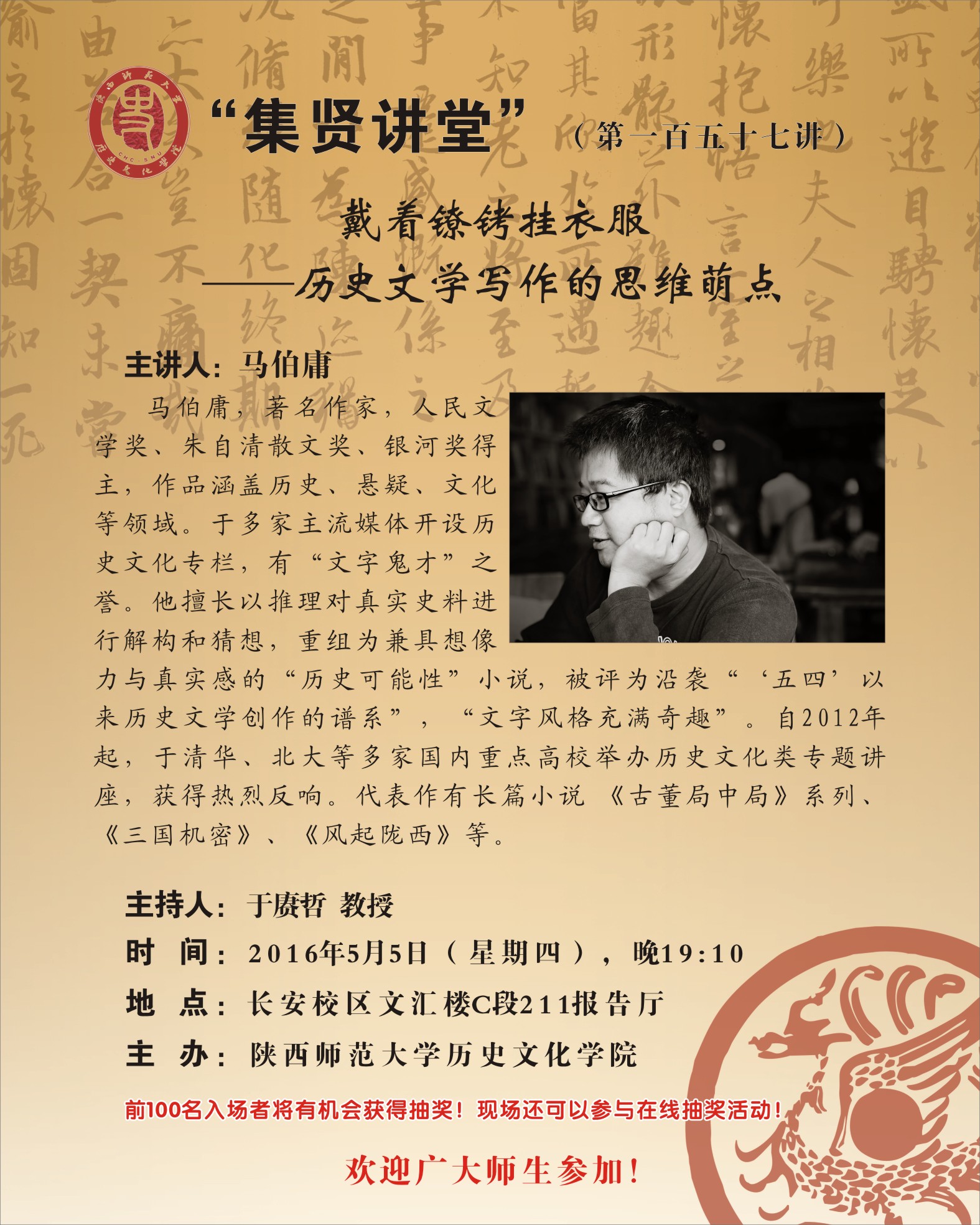 集贤讲堂第157讲:戴着镣铐挂衣服——历史文学写作的思维萌点