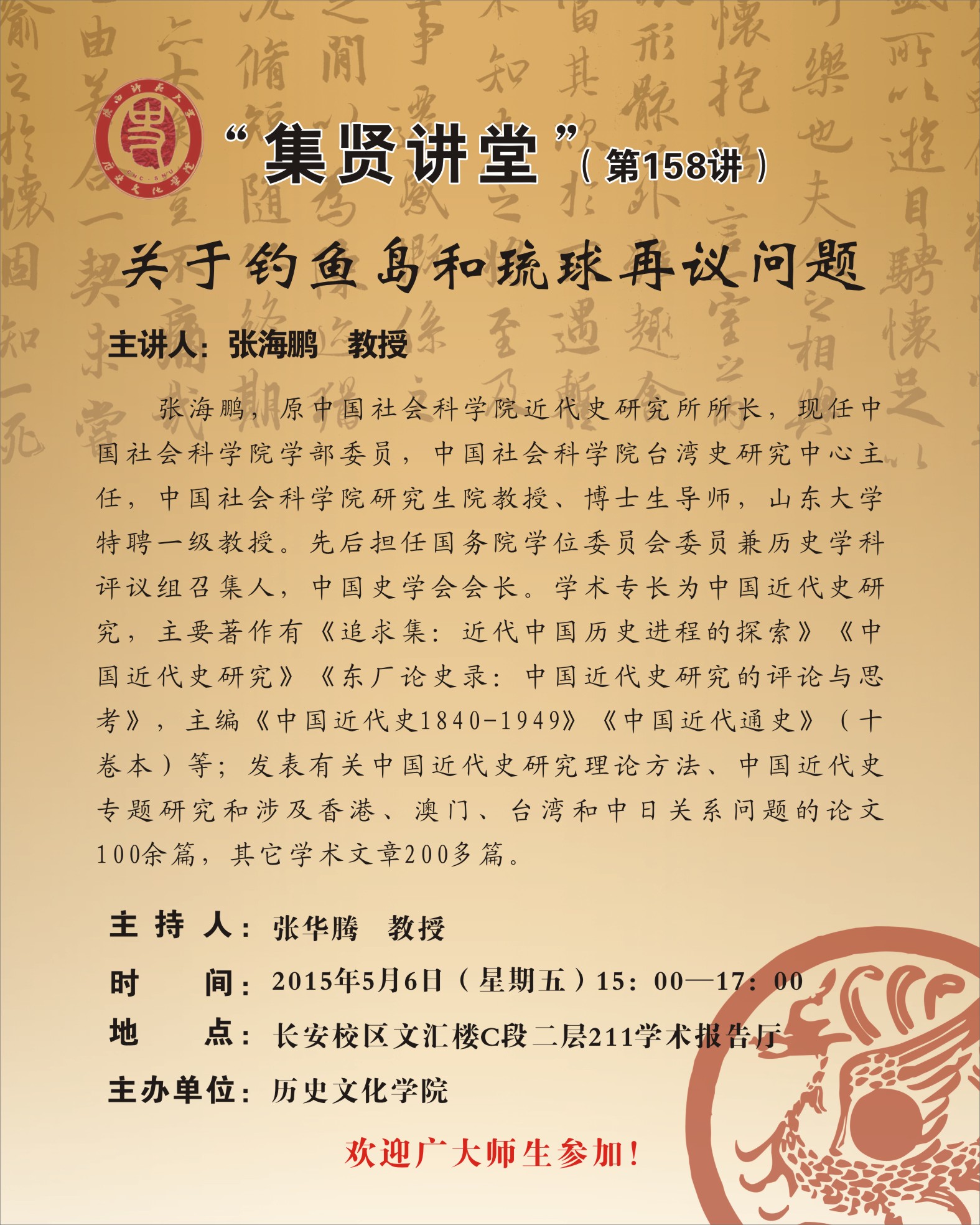 集贤讲堂第158讲:关于钓鱼岛和琉球再议问题