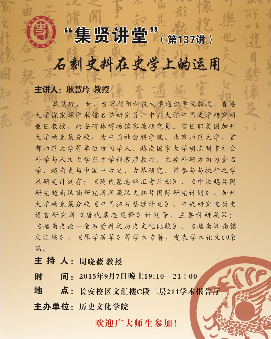 集贤讲堂第137讲:石刻史料在史学上的运用(耿慧玲)