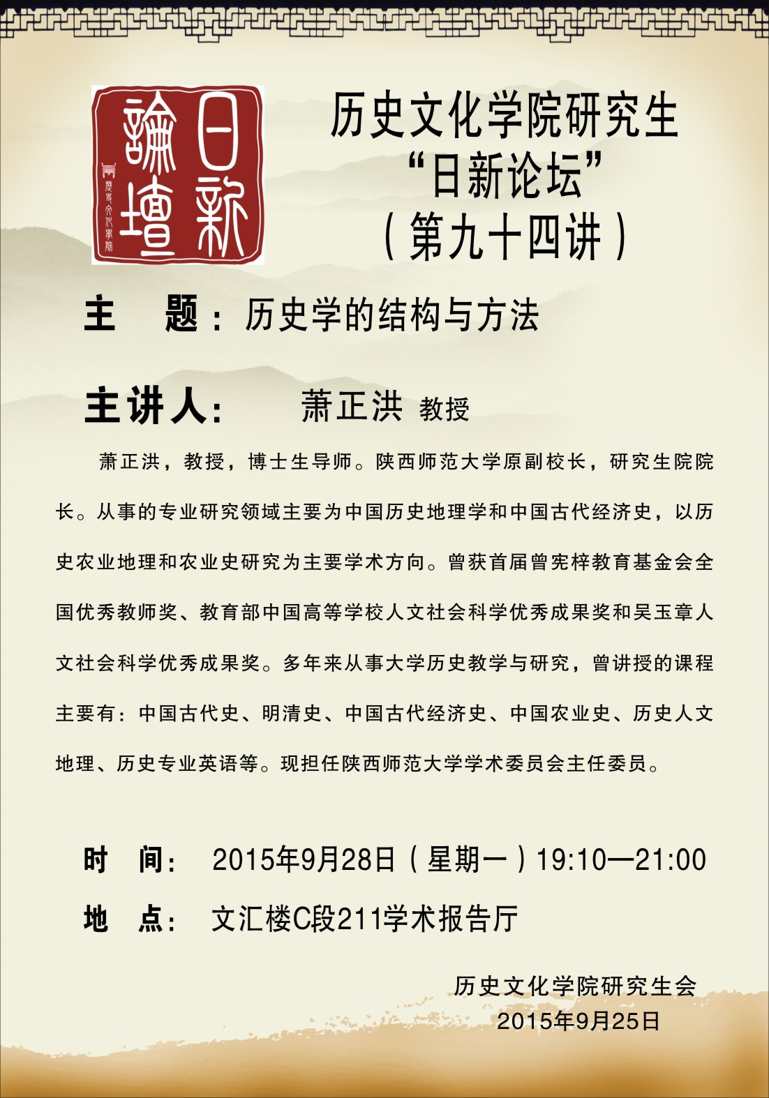 研究生日新论坛第94讲预告