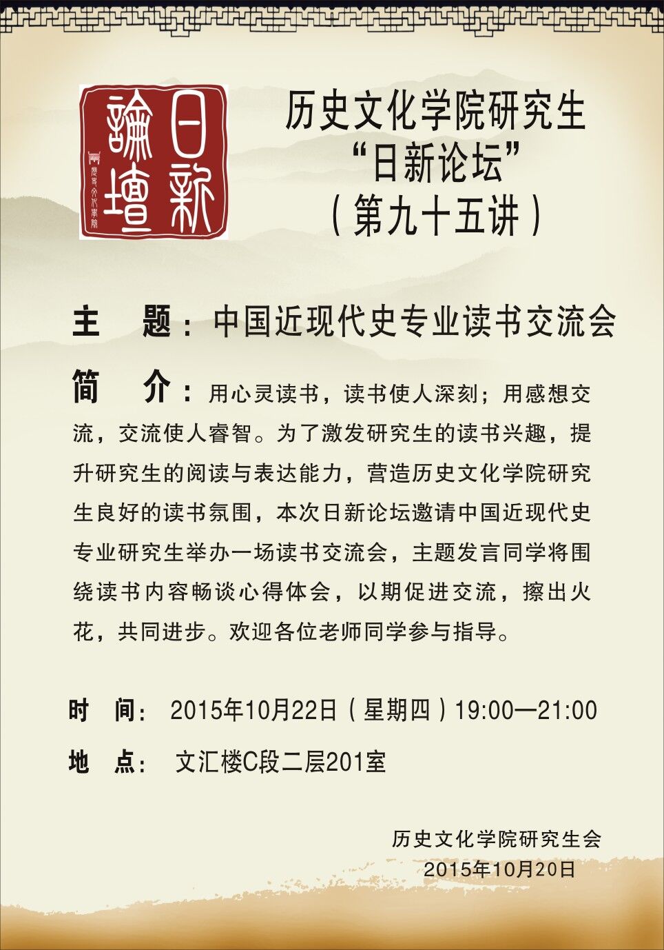 研究生日新论坛第95讲预告
