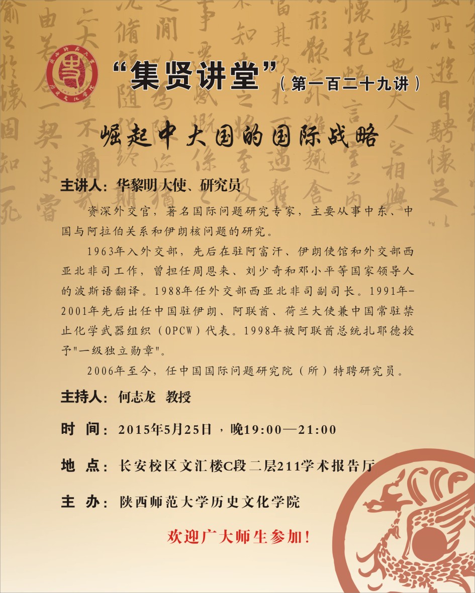 集贤讲堂第129讲:崛起中大国的国际战略(华黎明)