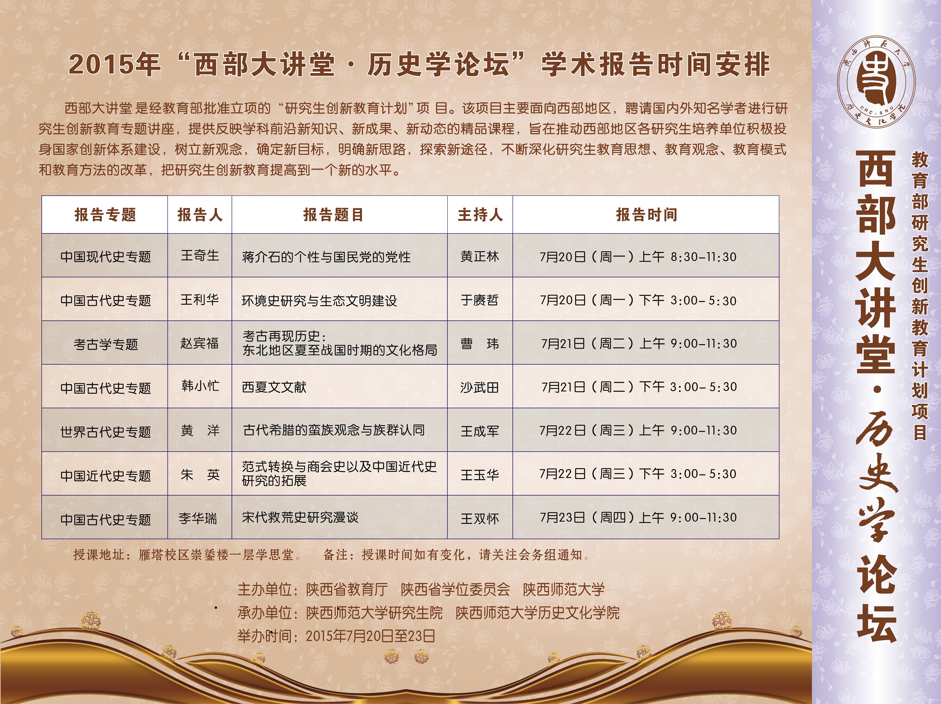 2015年“西部大讲堂·历史学论坛”预告