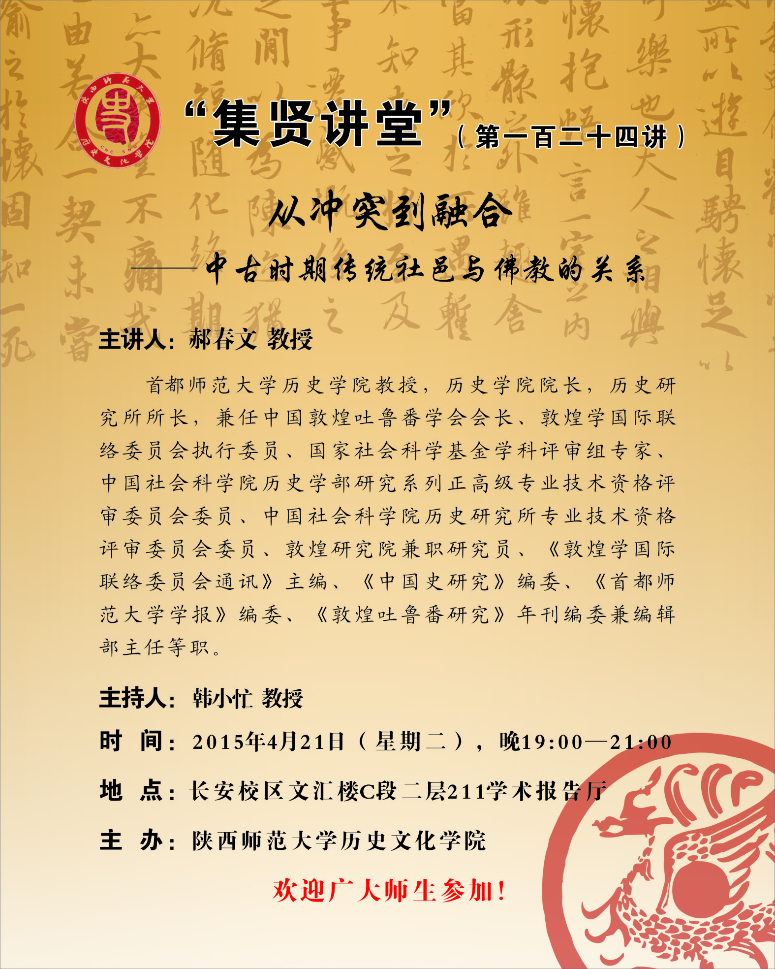 集贤讲堂第124讲预告:从冲突到融合——中古时期传统社邑与佛教的关系