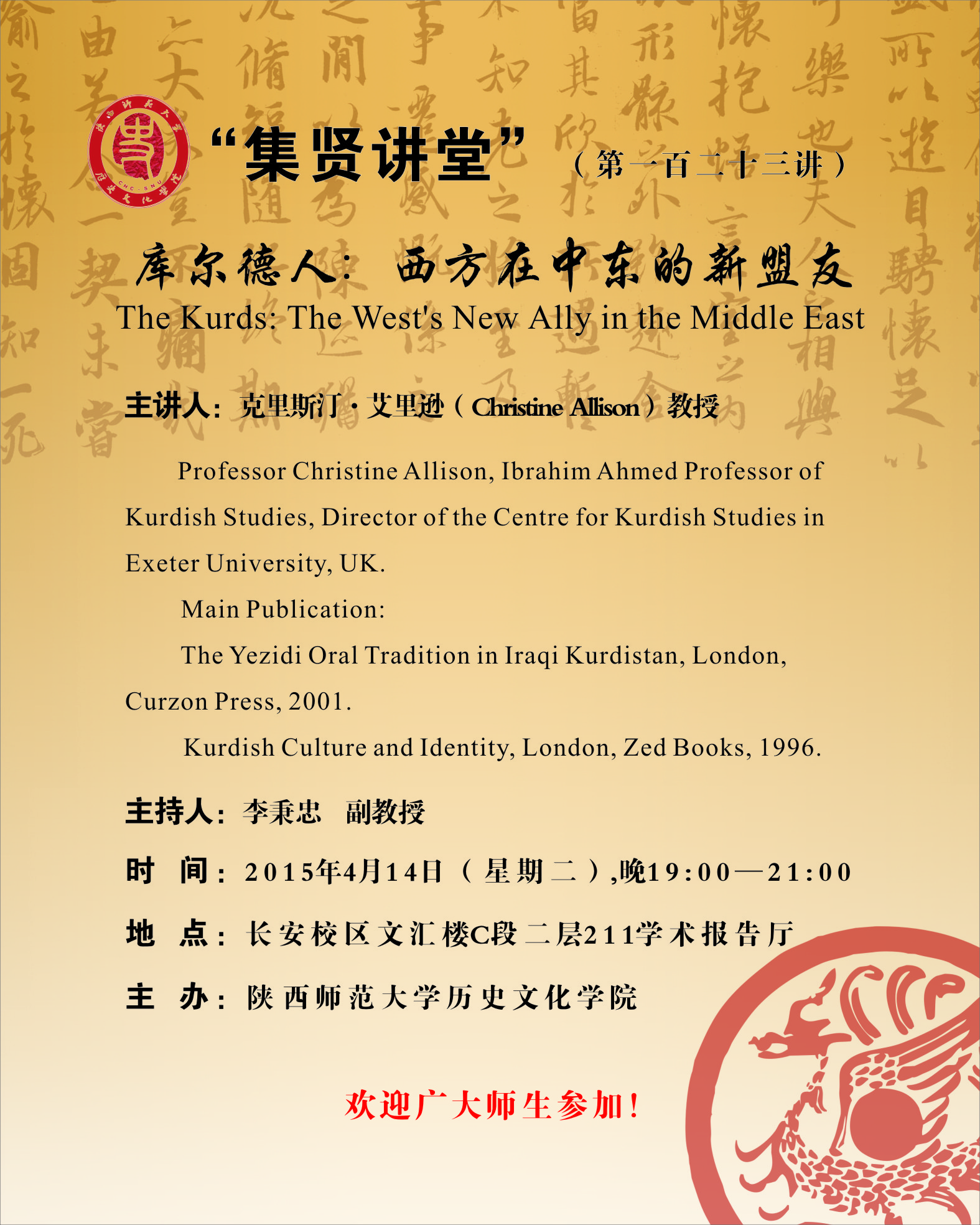 集贤讲堂第123讲预告:库尔德人:西方在中东的新盟友(克里斯汀·艾里逊)