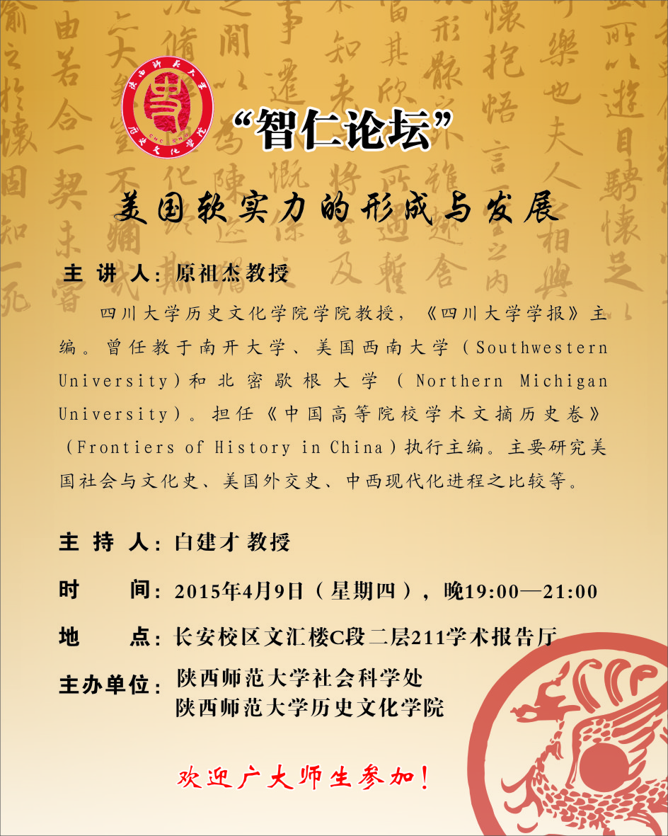 智仁论坛预告:美国软实力的形成与发展(原祖杰)