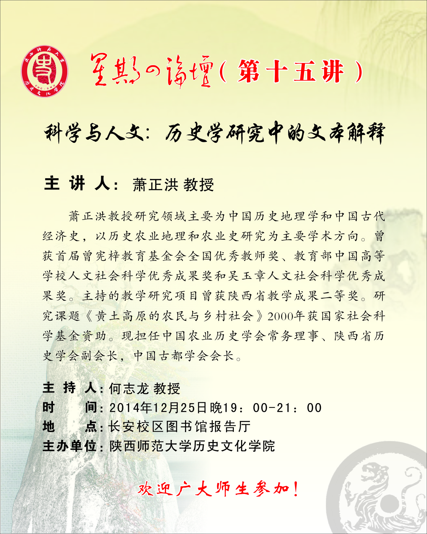 星期四论坛第十五讲:科学与人文—历史学研究中的文本解释