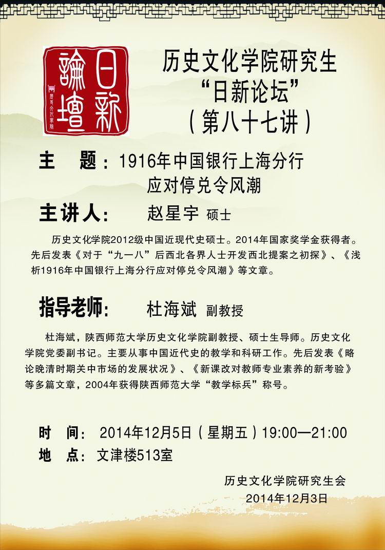 日新论坛87讲 1916年中国银行上海分行应对停兑令风潮