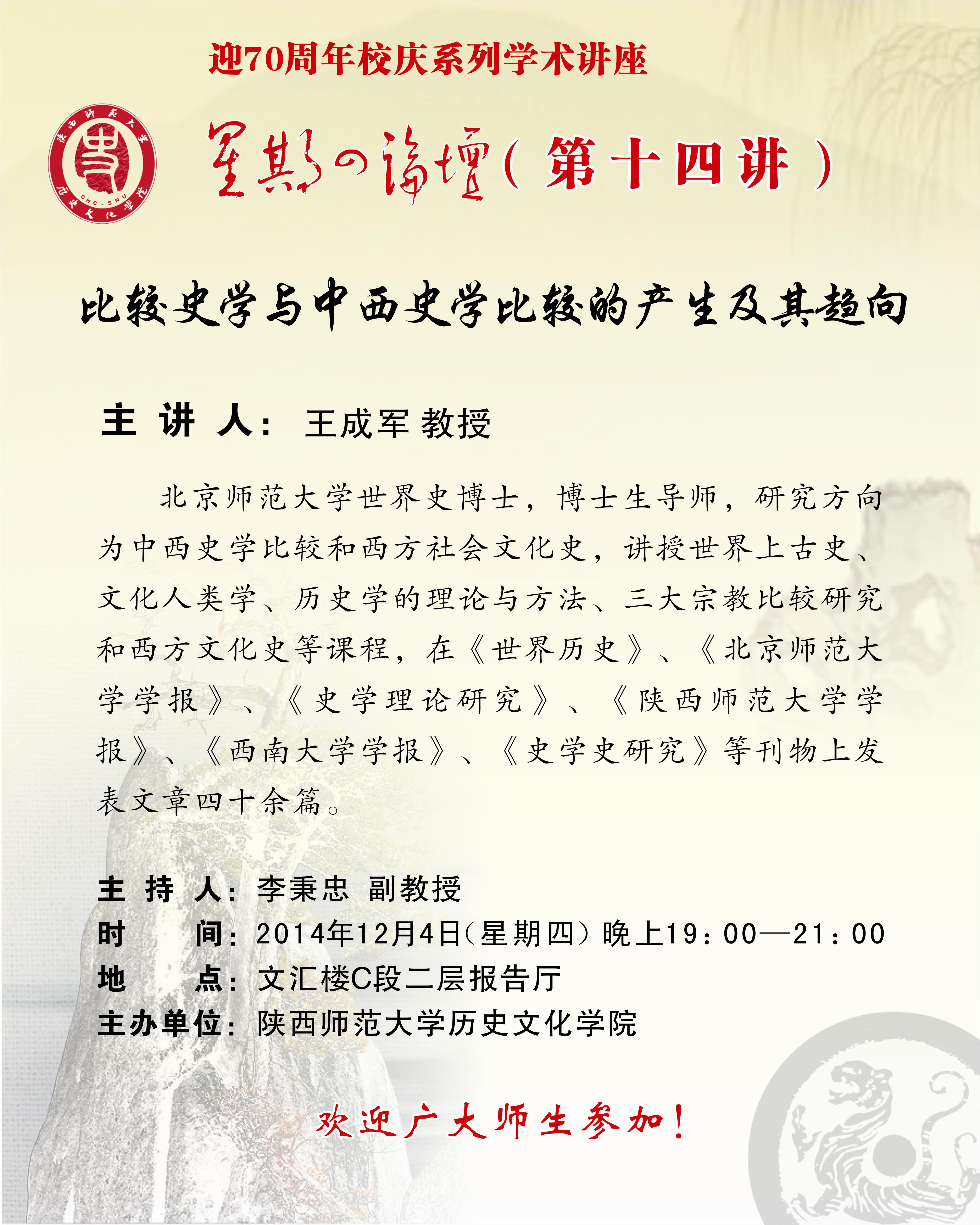 星期四论坛第十四讲:比较史学与中西史学比较的产生及其趋向