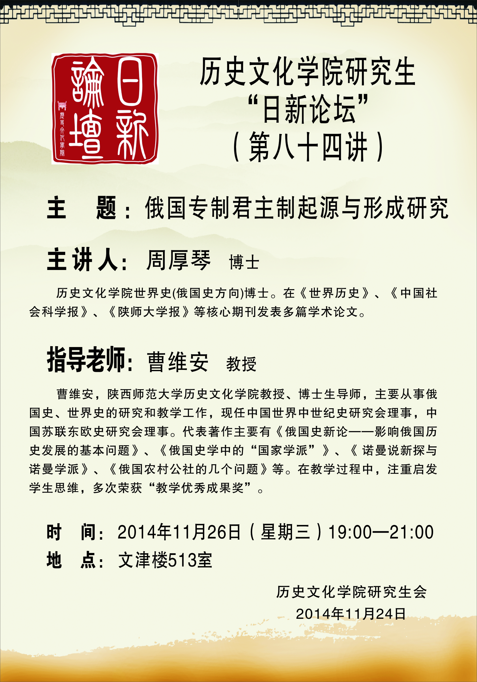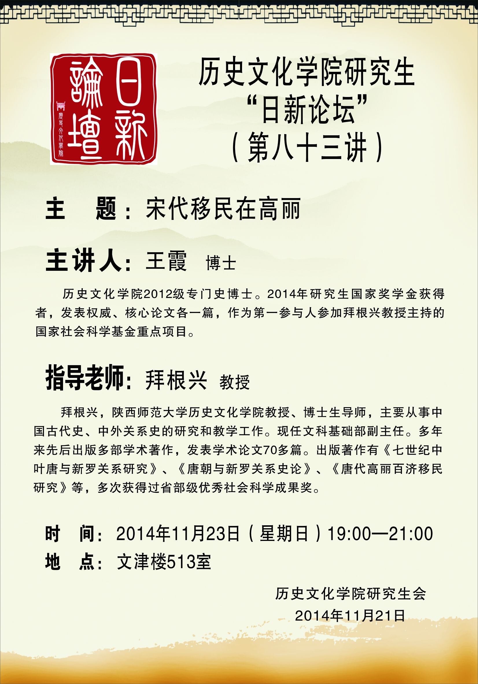 研究生日新论坛83讲预告