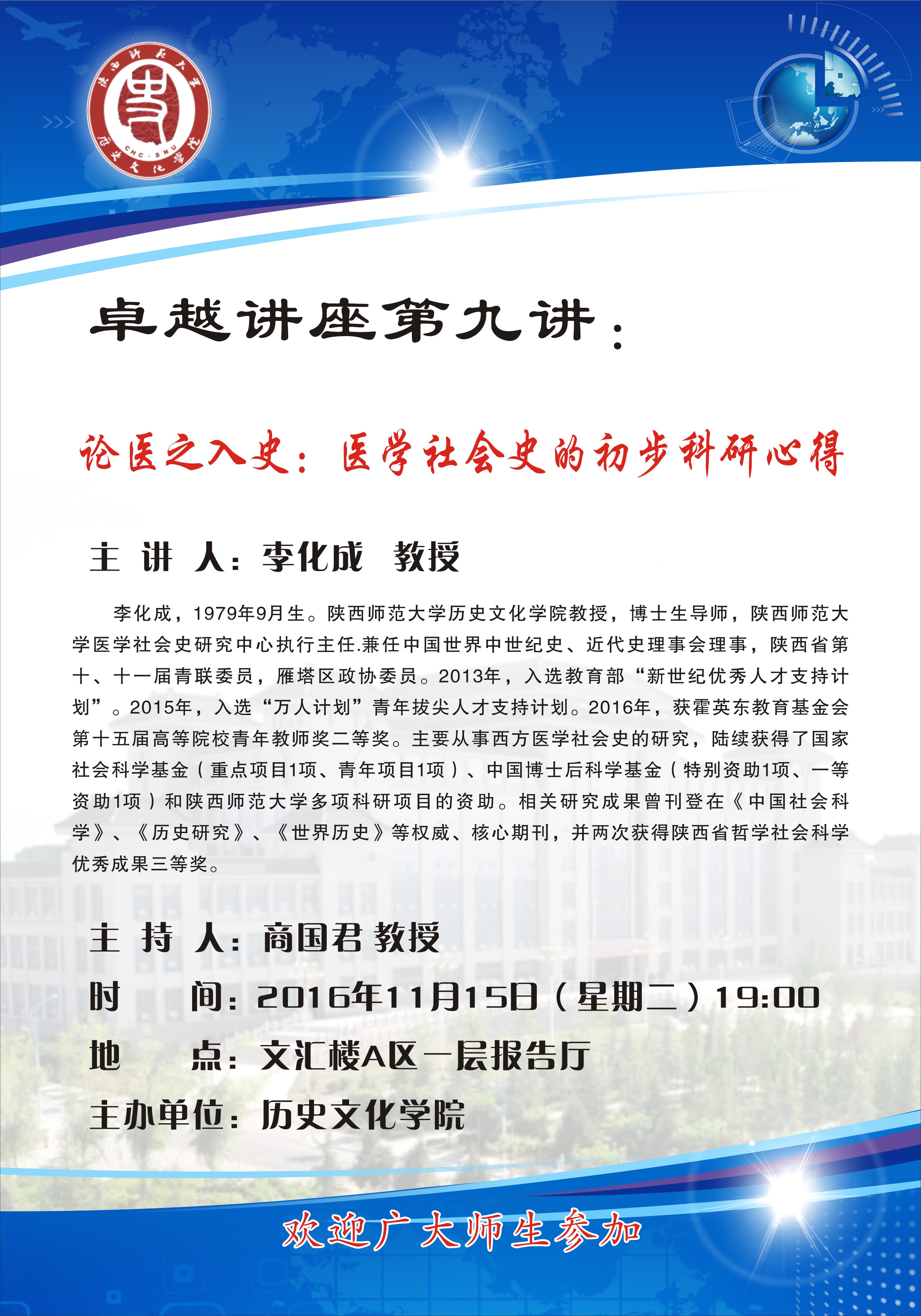 卓越讲座第9讲:论医之入史:医学社会史的初步科研心得