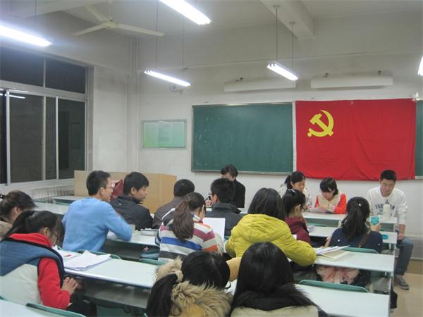 2013年11月28日星期四晚七点,太阳成集团tyc334552011级本科生党支部全体党员在文渊楼314召开了组织生活会。会议有两项内容,一是接收预备党员大会;二是“群众路线”理论的学习与座谈。 会议由支部组织委员宗亚茹主持。首...