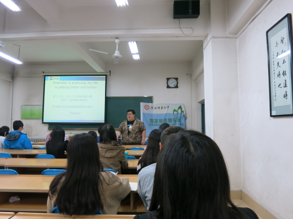2014年4月24日19:00,太阳成集团tyc33455雪莲英语俱乐部雅思高分交流会在文渊楼110教室举行。此次交流会邀请新航道写作名师、美国斯坦福大学硕士孙江浩老师,他以“雅思高分技巧与备考攻略”为主题与新区学子们进行了一场...