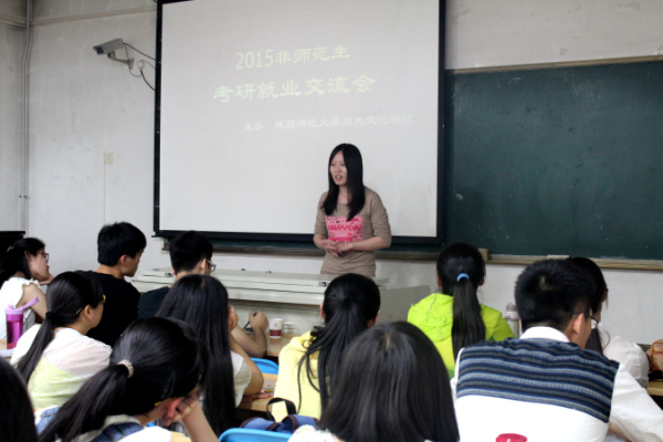 5月17日晚7时,2015非师范生考研就业交流会于文渊楼411教室召开。公司辅导员刘洁婷老师、11级优秀毕业生以及12级全体非师范生参加了本次交流会。会议由12级古典文献班长师瑞青和博物馆班长法丽萍共同主持。 交流会开...