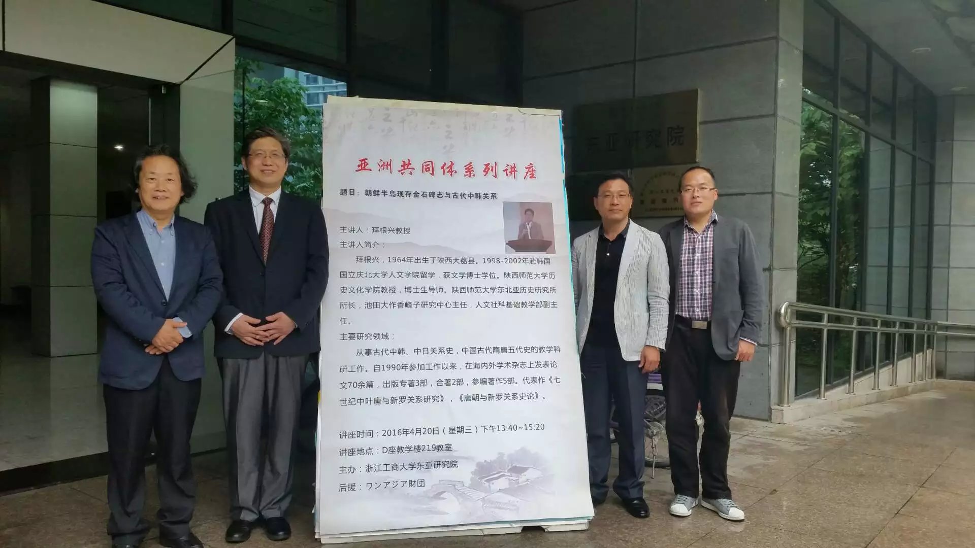 拜根兴教授赴杭州两所大学讲学 4月20日至21日,公司拜根兴教授应邀前往杭州两所大学讲学。 4月20,拜根兴教授抵达浙江工商大学,为该校东亚研究院八十余名师生作报告。拜教授的报告以《朝鲜半岛现存石刻碑志与古代中...