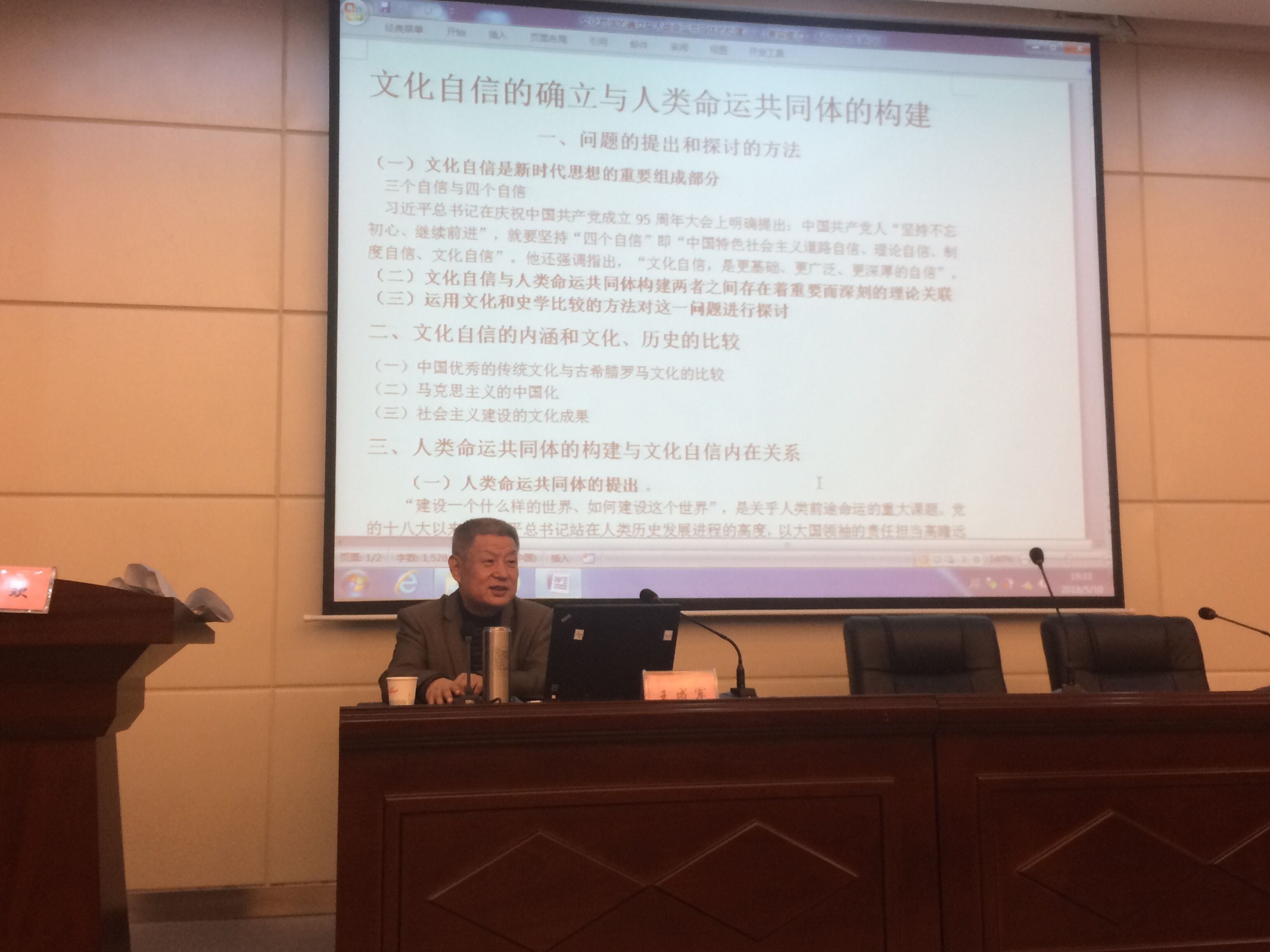 2018年5月10日19:00点,太阳成集团tyc33455入党积极分子第三次党课培训暨十九大精神学习会在文汇楼一层报告厅举行。报告会由辅导员王欢主持,报告题目为《论新时代文化自信观的确立与人类命运共同体的构建》。...
