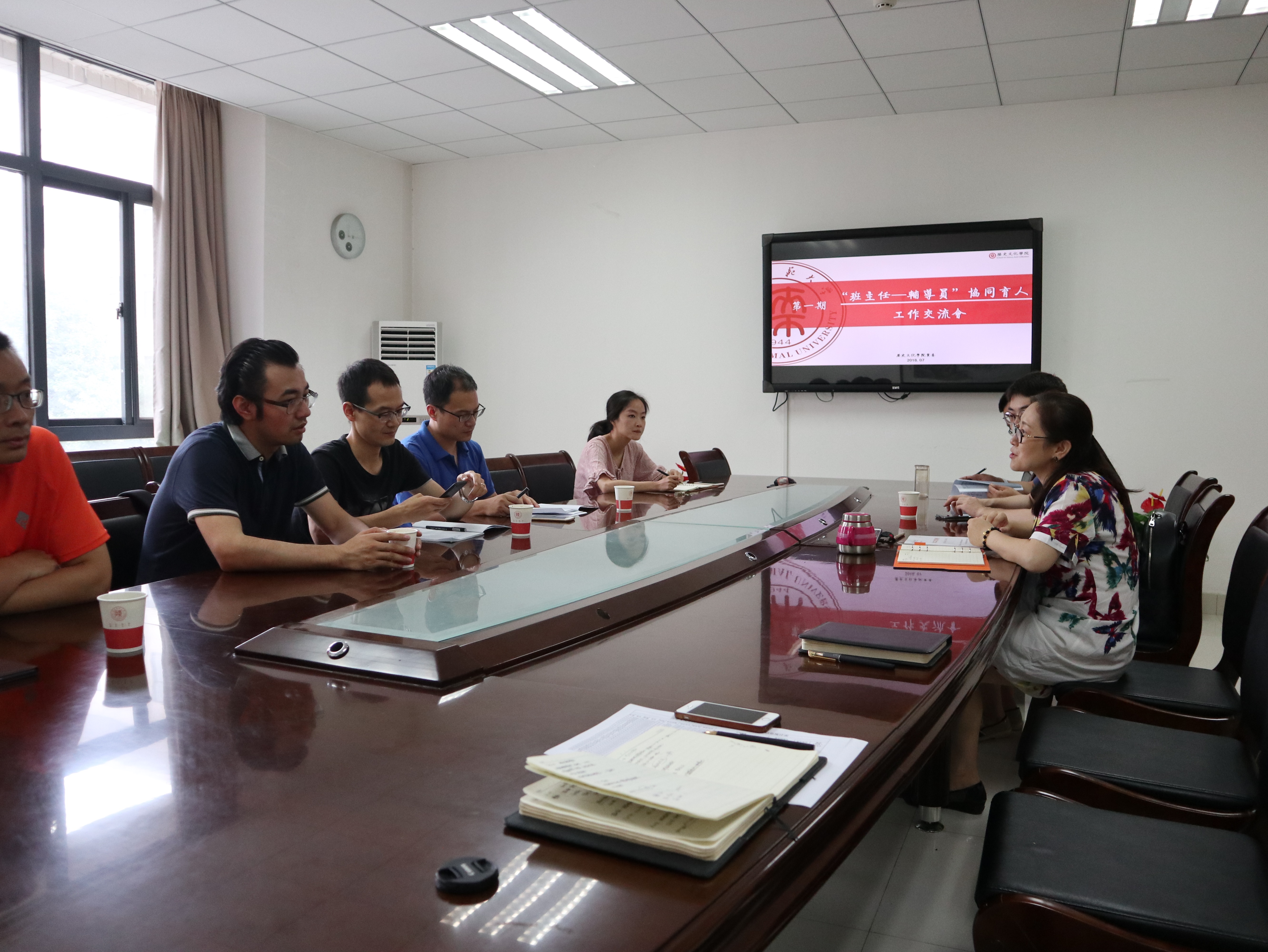 7月13日下午,太阳成集团tyc33455在文汇楼217会议室召开第1期“班主任—辅导员”协同育人工作交流会,公司2016级、2017级班主任及本科生辅导员王欢、孙懿文、鲁旭萌参会,会议由公司党委副书记程蕾主持。 程蕾首先代表学...