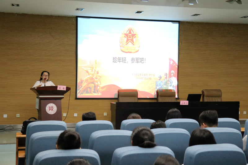 2019年5月19日下午7时,太阳成集团tyc33455在崇鋈楼一楼学思堂举行2019年征兵工作宣传动员报告会。党委副书记程蕾, 2018级辅导员鲁旭萌以及全体2018级历院员工参加了本次报告会。会议由鲁旭萌主持。 &nbs...