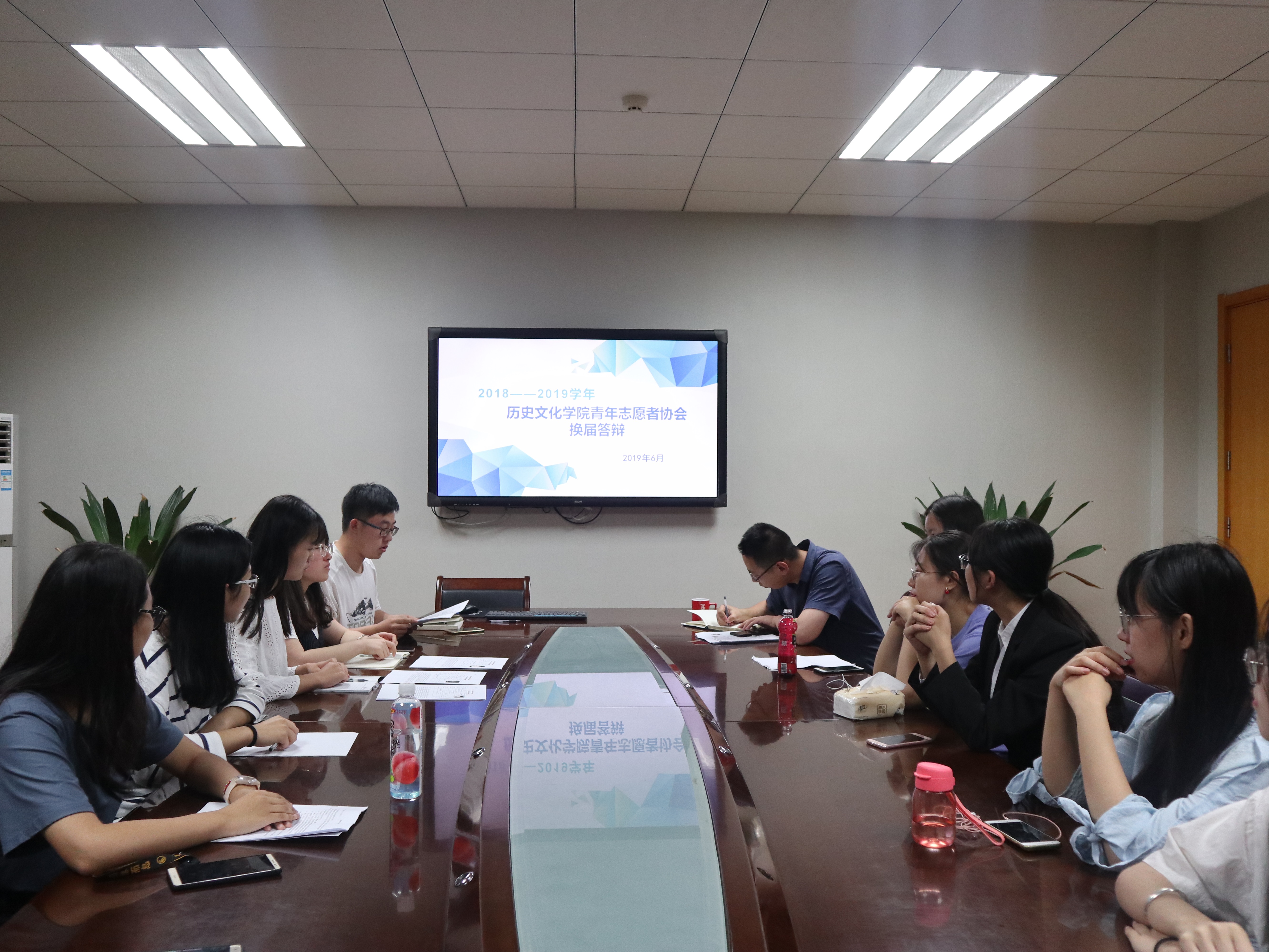 2019年6月22日晚19:00,太阳成集团tyc334552018-2019学年社团年度工作答辩会议于文汇楼C段217会议室开展,会议由李宇琪同学主持,公司党委副书记程蕾,辅导员王欢、孙懿文、鲁旭萌、马瑶、袁世强、师瑞青、张兴浩...