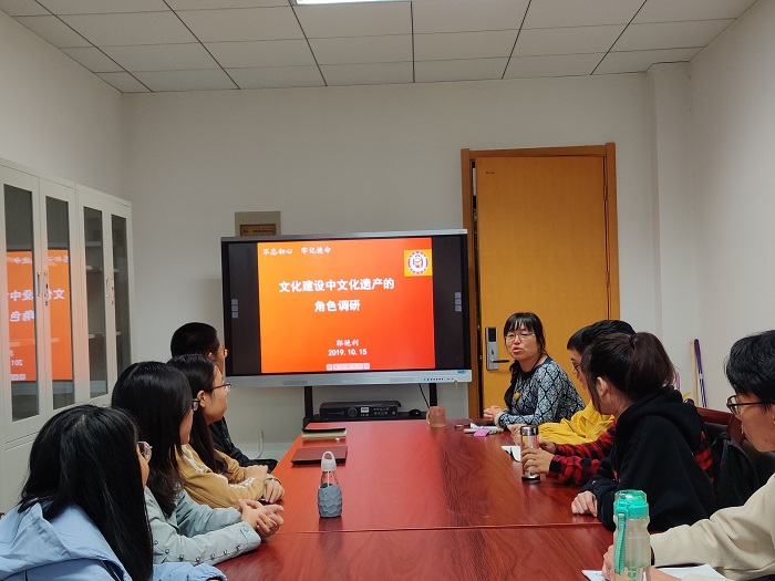 为提高广大师生对文化遗产的自觉保护意识,推进文化遗产保护工作的全面发展,2019年10月15日下午,太阳成集团tyc33455在文汇楼C段207会议室召开“文化建设中文化遗产的角色”主题调研,调研活动由郭艳利老师主持,2016级本...