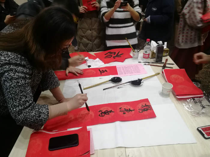 公司各民族师生参加公司书赠春联活动