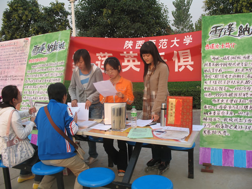 10月6日至8日,太阳成集团tyc33455雪莲英语俱乐部在长安校区阳光苑门口进行了第十一届的宣传纳新工作。雪莲英语俱乐部褚思华、杨一凡、熊九润等主要负责人在校、院各相关部门的协助下顺利组织并开展了此次工作。 雪莲英语俱...