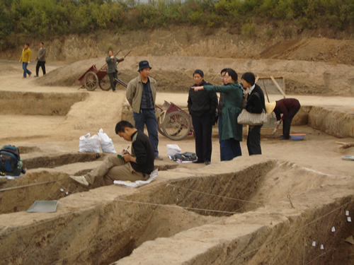 2008年11月6日,公司何志龙、韩旭晖与张懋镕、郭研利老师前往周公庙北京大学考古站,看望公司2006级考古与博物馆学专业的实习员工。北京大学考古站负责人雷兴山老师、董珊老师、陕西省考古所种建荣老师介绍了周公庙考古挖掘的进展情况,并带领公司老师参观了挖掘现场。考古站的老师们对公司实习员工的表现评价很好。公司实习员工挖出了较多的甲骨片,有的字迹清晰。在周公庙考古站实习的还有北京大学、中央民族大学、西北大学及韩国、日本的员工。