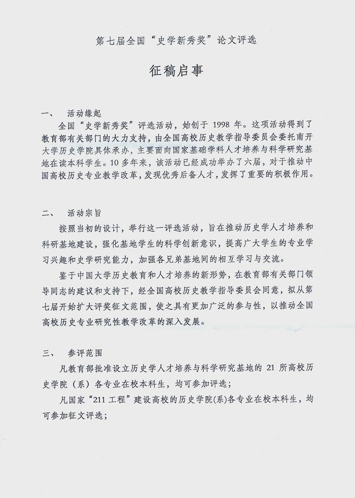 太阳成集团tyc33455首届“史学新秀奖”论文评选活动
