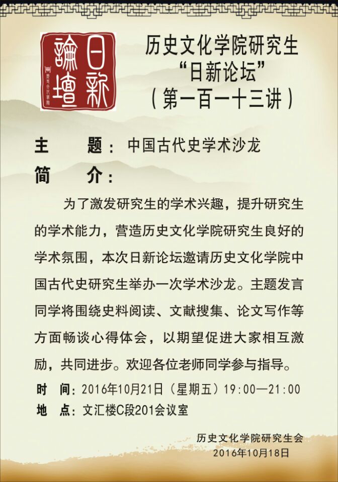 关于研究生日新论坛第113讲的通知