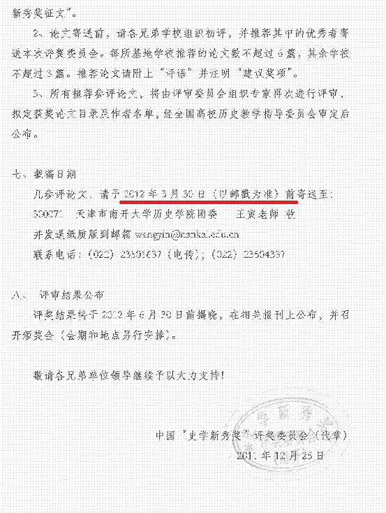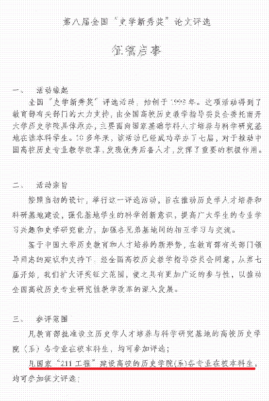 第八届全国“史学新秀奖”论文评选征稿通知