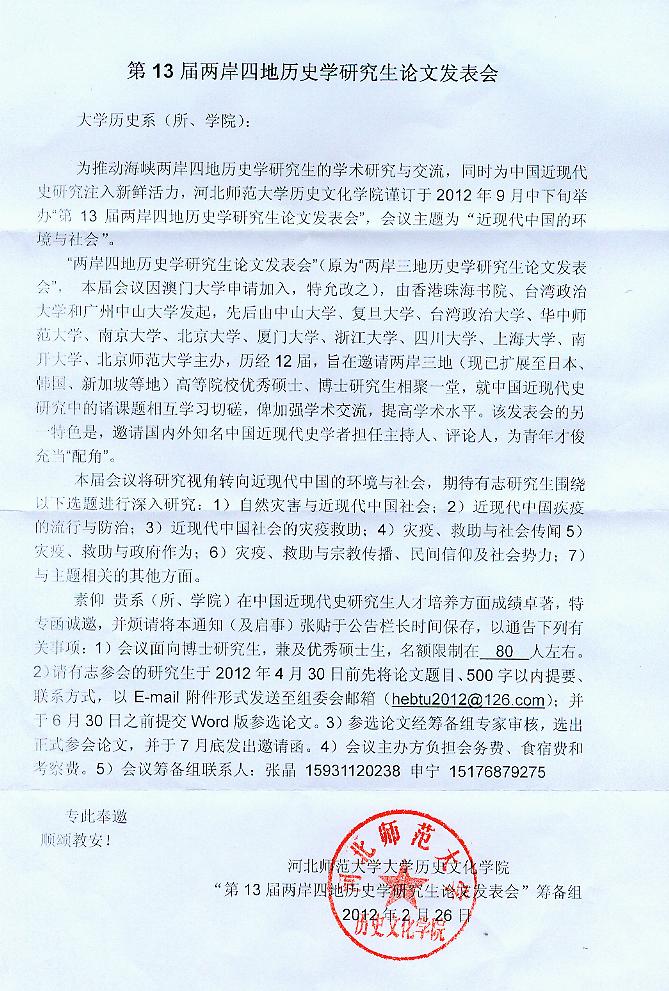 第13届两岸四地历史学研究生论文发表会