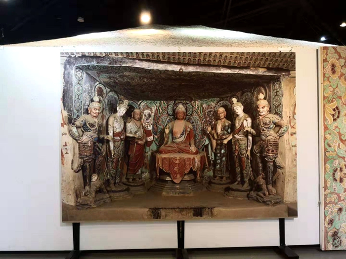 此次展览利用高清现代数字化技术高保真地复制了敦煌壁画艺术经典40幅,采用数字技术一比一复制洞窟第285窟一座。主要画作包括:敦煌莫高窟第220窟阿弥陀经变、药师经变;敦煌莫高窟第45窟观音经变、西壁释迦说法图一铺七身;莫高窟第254窟萨埵太子舍身饲虎图;莫高窟第257窟九色鹿本生;莫高窟第322窟释迦说法图;榆林窟第25窟观无量寿经变、普贤变及文殊变;榆林窟第2窟水月观音等敦煌石窟经典艺术作品,涵盖经变画、说法图、本生故事画、佛传故事画、飞天、装饰纹样等经典敦煌艺术作品,真实再现敦煌艺术的风华与神韵。其中不乏鸿篇巨制,画面造型多样,线条凝练,色彩瑰丽。