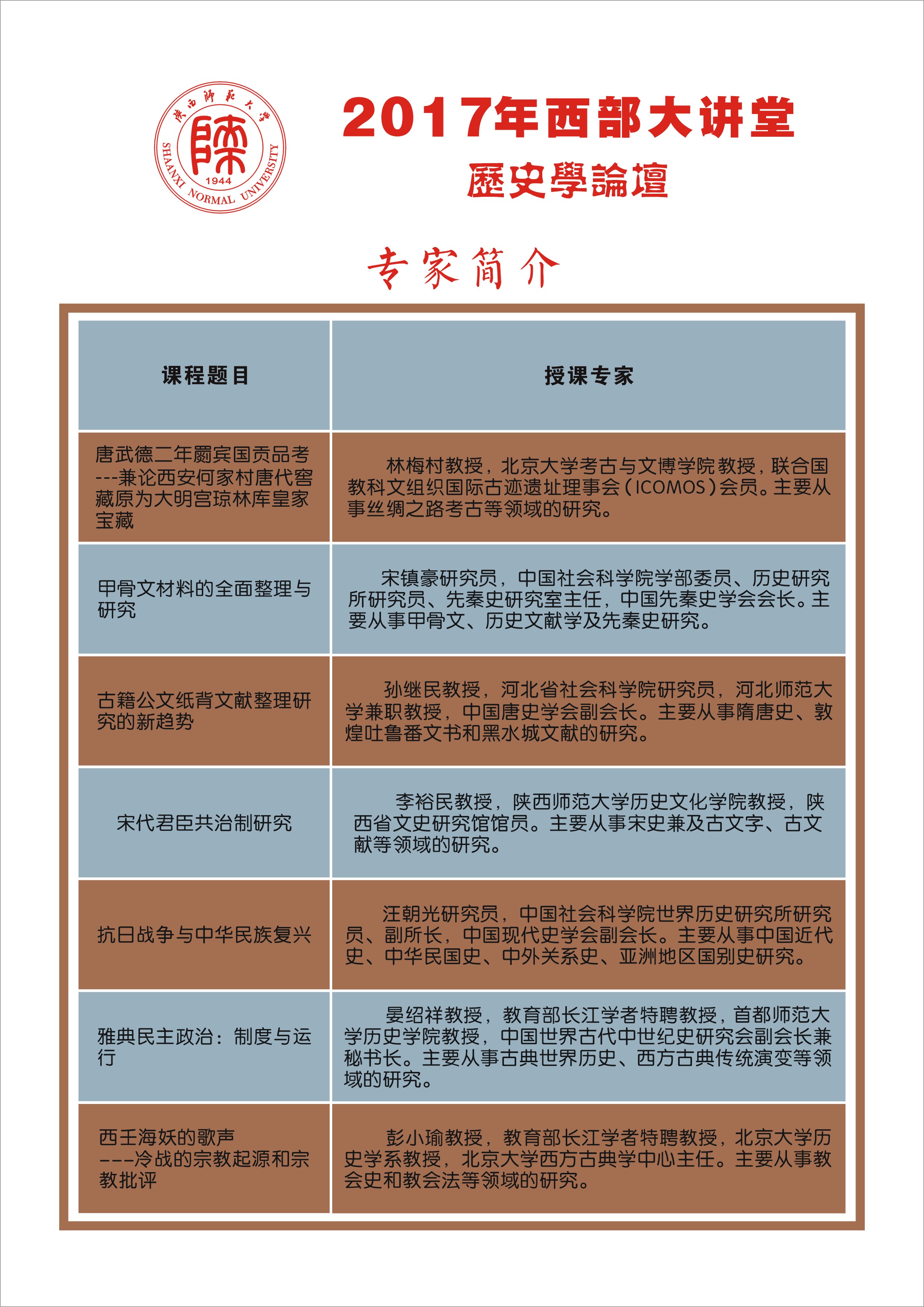 2017年“西部大讲堂·历史学论坛”通知(第二号)
