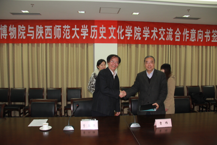 秦始皇帝陵博物院经理曹玮教授、党委书记段志长、副经理王明升、靳军良及秦始皇帝陵博物院相关部门负责人,公司经理贾二强教授、党委书记丁虹、副经理韩旭晖、办公室主任曹伟出席签字仪式。