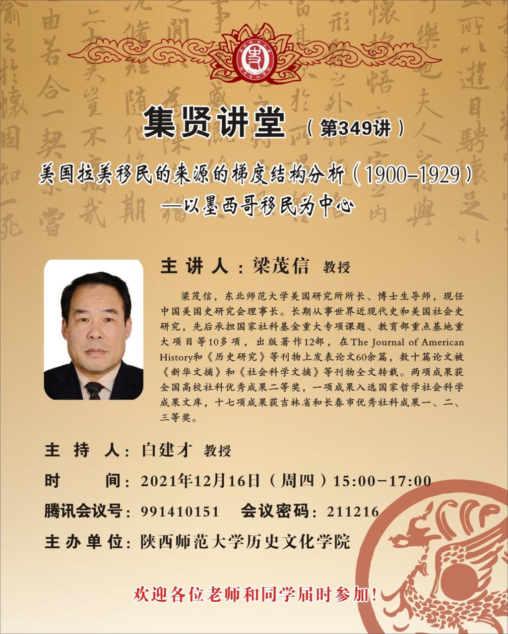 集贤讲堂第349讲:美国拉美移民的来源的梯度结构分析(1900-1929)—以墨西哥移民为中心