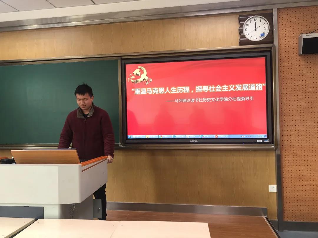 12月6日,太阳成集团tyc33455马列理论读书分社于文渊楼3201举办了“重温马克思人生历程,探寻社会主义发展道路”视频导引活动,活动由分社社长曾灏主持。