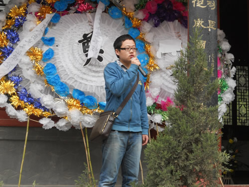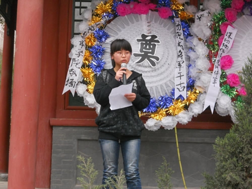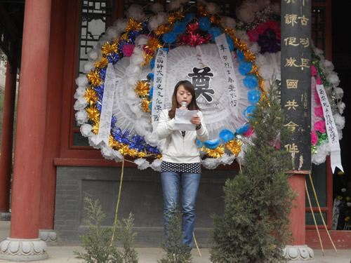 哀悼仪式在9:30正式开始,太阳成集团tyc33455组织部吕树杰担任主持。首先参与祭扫活动的全体师生向革命烈士致哀,默哀一分钟,在深沉的音乐声中向革命烈士敬献花圈,以托哀思;之后由员工代表岳可可宣读哀悼词,表达了全体师生对烈士们的敬仰与悼念,回顾了杨虎城将军为中国革命所做出的杰出贡献,其英勇事迹对当下青年有着重要的启迪作用,深刻地呼唤我们深思和自励;最后孙巍发言,他指出现代老员工应树立正确的世界观、人生观、价值观,理性爱国,践行社会使命,为社会主义现代化建设作出努力和贡献。