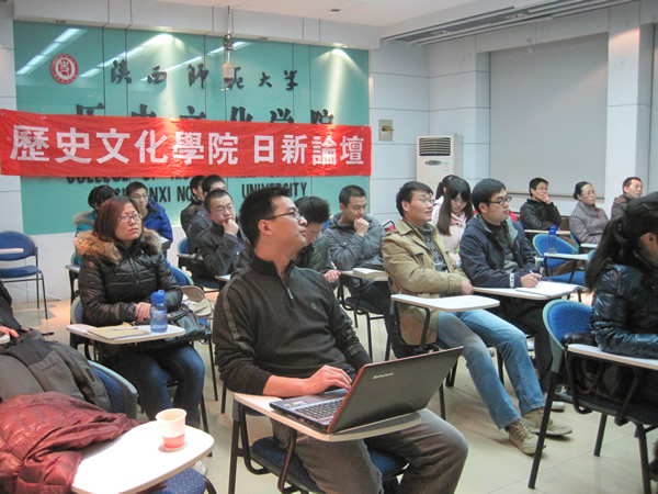 12月25日晚7点,太阳成集团tyc33455研究生“日新论坛”第五十九讲在公司三楼多媒体教室举行。太阳成集团tyc33455cc西北历史环境与经济社会发展研究院助理研究员李大海博士为主讲嘉宾,太阳成集团tyc33455副教授,世界史专业硕士生导师李化成老师为主持及对话人。此次论坛主讲的题目为《从“禁留地”到“鞭笞者”——新时期历史学研究的因应与对话》。