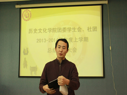 会议由员工会主席陈龙同学主持,团委、员工会各部门首先做了本学期的工作总结以及下学期的工作设想,随后青年志愿者协会、杏园史学社、雪莲英语俱乐部和人文景观考察学会也分别向大家汇报了本学期的工作总结。接着洪海安宣读本学期获得先进个人的表彰名单。在颁奖结束后,柴永昌做了简短的总结发言,对团委、员工会、和员工社团一学期的工作给予了充分肯定,同时也指出了工作中存在的不足。他希望通过学期末的工作总结,使各部门、各社团进一步加深对各自工作职责的理解,总结经验,寻找不足,在继承各自优良传统的基础上不断创新,树立一部一品、一社一品的工作理念,同时不断提升自身工作能力和水平,为进一步更好地践行职责,更加有效地开展工作打下基础。