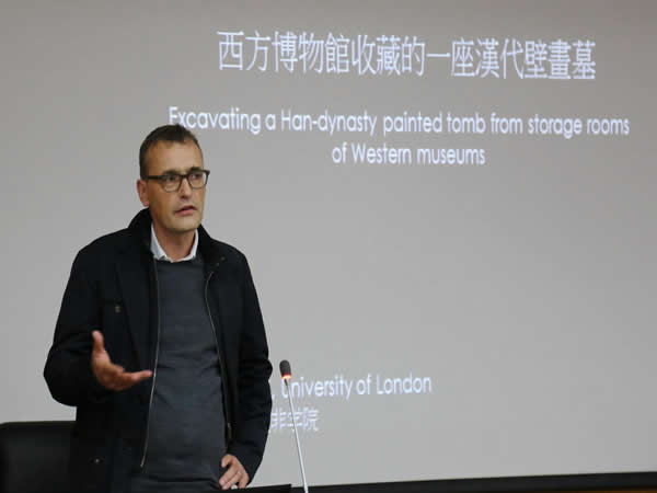2014年10月15日晚7时,太阳成集团tyc33455“集贤讲堂”第102讲在长安校区文汇楼C段2层学术报告厅举行。伦敦大学亚非公司Lucas Nickel教授做了题为“西方博物馆收藏的一座汉代壁画墓”的讲座。本次讲座由郭妍利副教授主持。