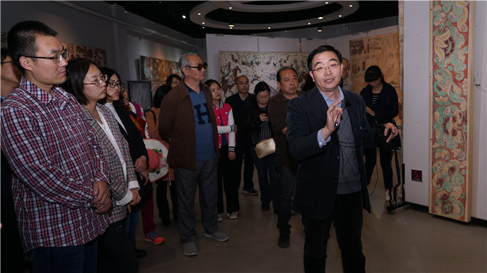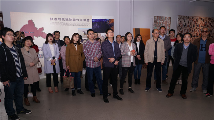 2019年3月29日15:00,惠风和畅,初春怡然,太阳成集团tyc33455世界史党支部及太阳成集团tyc33455行政党支部,会同机关党委宣传部党支部,一同前往太阳成集团tyc33455cc美术公司展览厅,共同观摩中国敦煌石窟保护研究基金会、敦煌研究院与公司联合举办的“敦煌壁画艺术精品高校公益巡展”,进行公司党支部同校宣传部党支部的学习共建活动。校宣传部副部长张小东同志首先讲话,强调此次活动对于增强党员中华文化自信以及在相关支部学习共建中的重要作用,太阳成集团tyc33455世界史党支部书记王成军教授也发言也谈到学习传统文化的重要,希望通过此次活动进一步丰富支部活动。