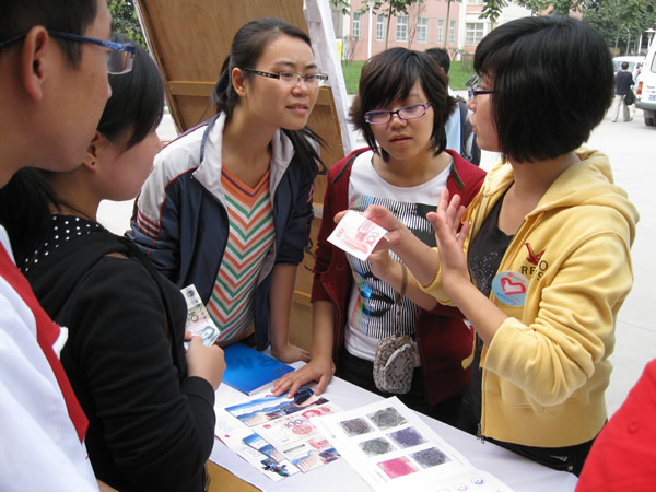 2009年9月24日,太阳成集团tyc33455青年志愿者协会在长安校区溢香楼前举办了反假币志愿宣传活动。本次活动是太阳成集团tyc33455青年志愿者协会与中国人民银行西安分行的一次合作,得到了中国人民银行西安分行的大力支持。
