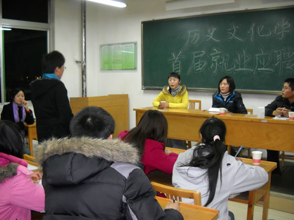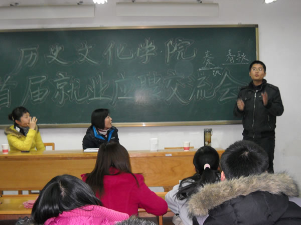 首先,由董亚伟同学发言,主要阐述了如何讲课以及应聘讲课技巧。在讲解中,董亚伟举了他在试讲时遇到了具体实例,告诫同学们在应聘中要打破以往的讲课成规,力争创新,切忌老生常谈。接下来,温霞同学主讲了就业时的“硬件”和软件的准备,即如何在日常学习中提高自身能力,增加就业资本,对在座的低年级的同学有很大的启发意义。最后,由张琳琳同学讲解应聘技巧与心态,讲了应聘的具体细节并且当场就相关细节和在座的同学配合做了演示,形象生动,入木三分,给同学们留下了深刻印象。讲解之后是自由提问时间,同学们踊跃的提出了自己心中的疑问,三位同学一一热情回答。