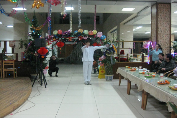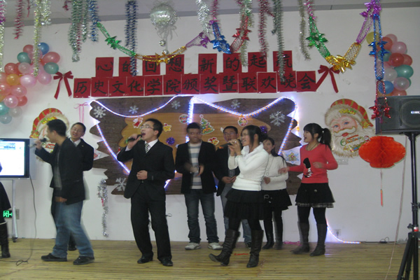 19时,韩老师致完开幕词后,晚会在动感、火辣的舞蹈中拉开了帷幕,三位同学青春活力、魅力四射的劲舞表演将场上的气氛一下子推向了高潮,欢呼、雀跃把大家带入了共同的狂欢,接下来三位女生甜美悦耳的歌声让大家陶醉在青春美好的回忆中。而一段轻快灵动的哈萨克舞蹈却让大家感受到了不一样的民族风情。研究生学长的武术表演则展示了中国男儿的铁骨铮铮,赢得了大家阵阵呐喊和掌声。幽默的小品“应聘”在轻松、诙谐中揭示了当代老员工的就业压力。唯美的男女对唱则把大家带入了美丽的“神话”。而热情洋溢、激情四射的歌曲串烧让大家在那个自己的舞台上一展风采。节目的最后,李亚平老师、袁良勇老师也为会场的气氛所感染,一展歌喉,杜海斌老师也与大家一起同台演唱,会场上的气氛此起彼伏,所有人都热情洋溢。