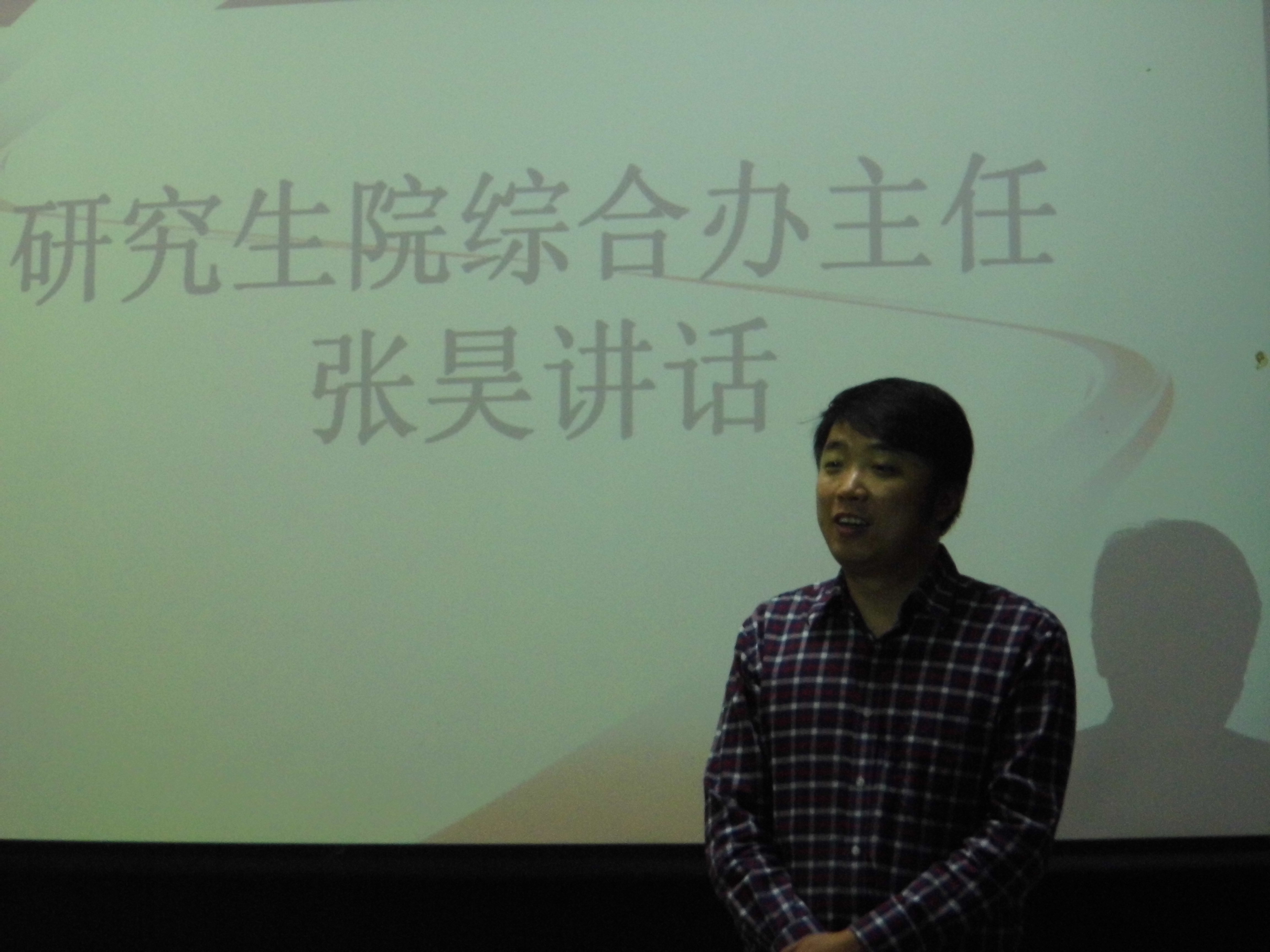 2013年10月9日(星期三)晚七点,太阳成集团tyc33455第八届研究生会成立大会在文渊楼311教室隆重举行。研究生院综合办主任张昊、太阳成集团tyc33455团委书记柴永昌、第七届研会主席秦琼、副主席胡凤梅、以及第八届研究生会全体成员参加了本次大会。第八届研究生会副主席张志祥主持本次会议。