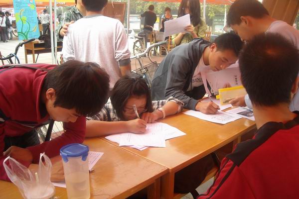 此前,为了充分展现社团风采、顺利开展纳新工作,社团主要负责人及院团总支员工会主要员工干部进行了充分细致的前期准备。10月9日,社团纳新工作正式开始。雪莲英语俱乐部的主要干部们积极开展各项工作,热情接待前来咨询和报名的同学。与此同时,人文景观考察协会的骨干们也不甘示弱;他们热情地向过往同学发放宣传资料,并细心地为咨询的同学讲解社团的活动情况。纳新工作进展顺利。