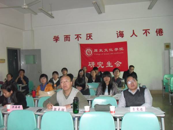 下午14时,活动正式开始。在主持人宣读比赛规则和奖项设置后,比赛正式拉开序幕。选手们按预先抽签的次序依依登台进行比赛,他们讲授的主题涵盖了古今中外历史的诸多方面,在规定的时间内向在场的老师和同学们展现了自己扎实的专业知识和语言表达水平。选手们良好的语言表达能力、丰富的专业知识以及独具特色的课件设计得到了评委们的一致认可。一年级组谢晶晶同学引领大家走进新航路开辟的世界,感受新航路的开辟对世界产生的影响;闫晋同学通过回顾英国君主立宪制以及对“邦联”和“联邦”的区别分析美国1787宪法产生的背景。二年级组的比赛也同样精彩,选手们的表现异彩纷呈,崔人杰的侃侃而谈、王刚的幽默风趣、肖雪的思路清晰赢得在场评委及同学的阵阵掌声。
