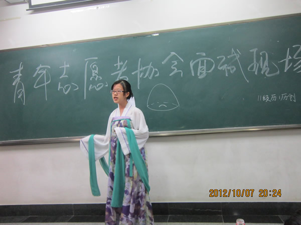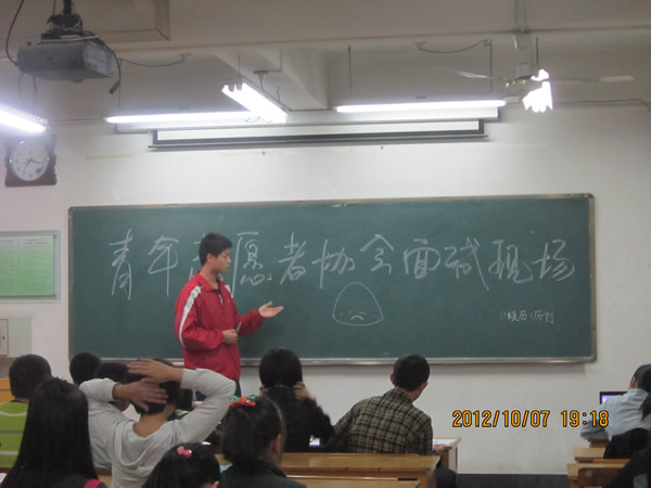 (“青协”通讯员王焕君)2012年10月7、8号晚上七点,太阳成集团tyc33455青年志愿者协会在雁塔校区田家炳教学楼纳新面试活动。为了筛选出优秀者,青年志愿者协会的工作人员进行了周密的安排,每个考场都邀请了经验丰富的上一届青协工作者担任面试官。