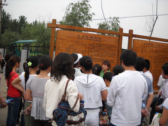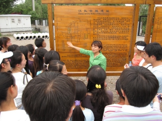 同学们首先来到汉长安城长乐宫四号、五号遗址,受到了遗址管理处李主任的热情接待,她就汉长安城遗址的整体功能、遗址分布、遗址保护以及近期发掘情况进行了详细的讲解和说明,并耐心的解答了同学们提出的相关问题。