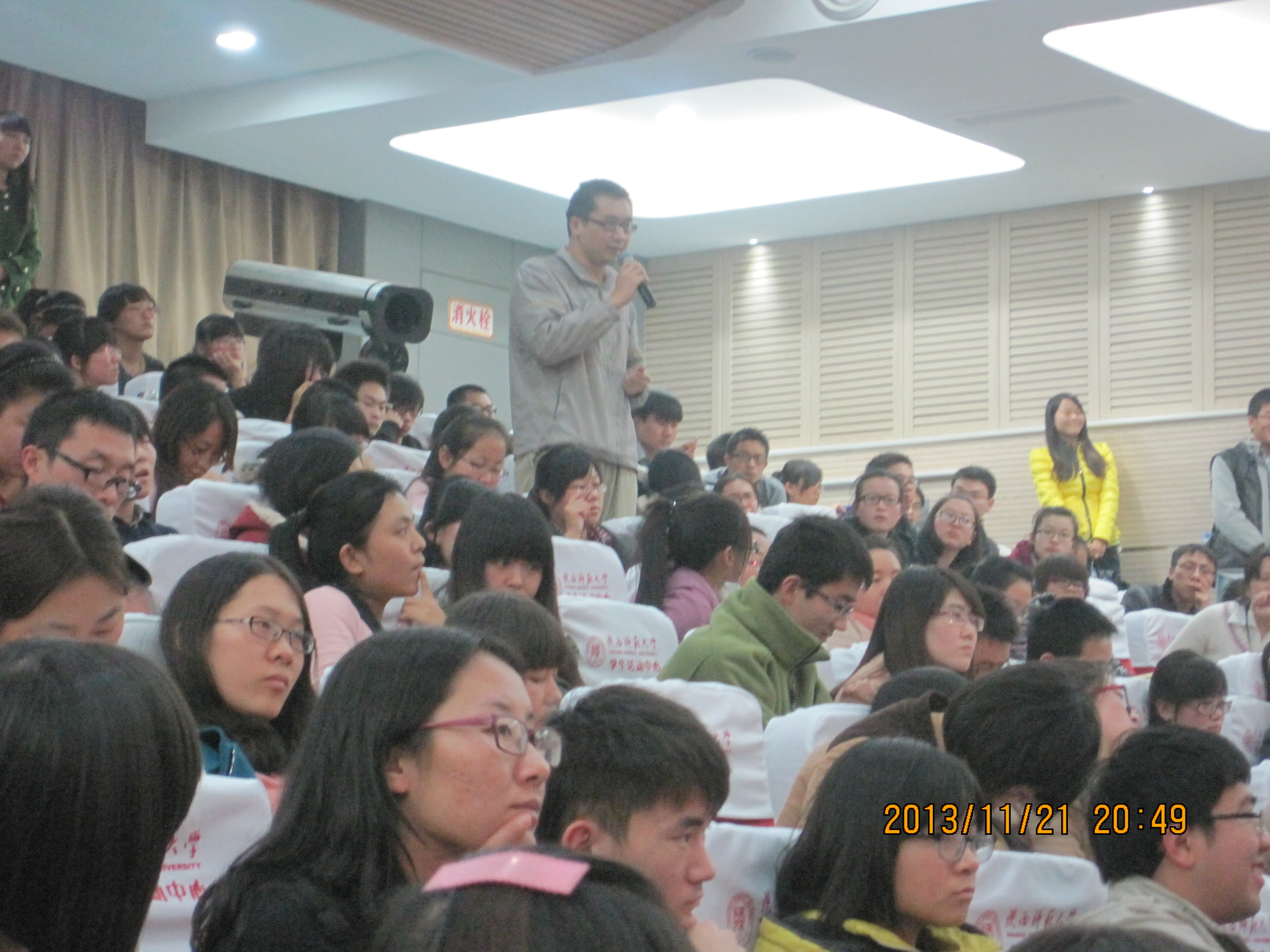 简短的开坛仪式结束后,中国唐史学会副会长、隋唐史专家杜文玉教授以《上官婉儿其人与上官婉儿墓之谜》为题向给大家作了首场报告。杜文玉教授运用丰富的历史文献及图片资料从上官婉儿生平、所受教育、是非功过、被杀原因、与其有关的男性及其墓被何人所毁等方面为师生揭开上官婉儿其人其墓的神秘面纱。首先,杜教授从上官婉儿家世及在宫中身份演变两方面对其生平做了提纲挈领的介绍。其次,杜教授针对上官婉儿所受教育出自官学或私学的说法提出自己的看法,认为其所受教育应是宫廷教育。接着,杜教授简要介绍其政治作为,指出这些作为对提高唐代妇女地位的积极作用。最后,杜教授就上官婉儿之死及其墓被何人所毁表明自己的推想——其墓非唐玄宗李隆基所毁,应是其政敌李唐宗室为之。在互动环节,同学们纷纷针对讲座内容向杜教授提问,杜教授一一耐心解答,现场互动气氛热烈。